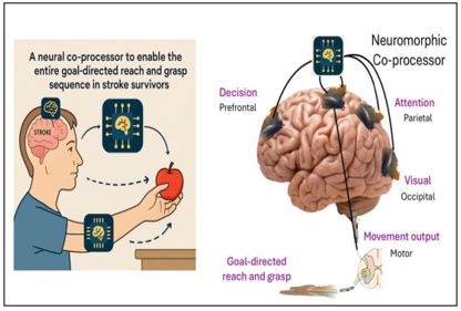 • The second phase aims to develop a minimally invasive embedded co-processor that can restore sensorimotor coordination in patients suffering from chronic neurological deficits following middle cerebral artery stroke.